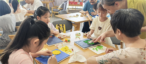 活动开始,志愿者先向青少年们普及了中秋的由来、中秋节的神话传说、中秋的传统习俗,还有一些关于中秋的古诗词。然后志愿者讲了今天要运用到的非遗——中国四大发明之一的造纸术,因为有了纸的出现,文化变得更容易传播,又从中国传播到了世界各地,所以说,小小的一张能被评为四大发明之一。青少年们都好奇纸如何跟中秋节产生联系没,中秋好像应该做月饼、做灯笼,今天的却不是做这些以往的方式。志愿者从中秋的神话故事中提取了小白兔、月亮等的元素,然后运用了造纸术中的纸浆,让孩子来堆叠画面,画面不像之前用笔画出来的平整的,而是凸起来的,有层次的,在铺设纸浆的时候,用镊子固定的时候形成的独特的肌理,就像雕塑作品,孩子们在制作中学习到了传统文化和非遗文化知识,也在手工制作中体验到了耐心和细心的重要性,不可急躁,稳定心性,才能做出好的作品。