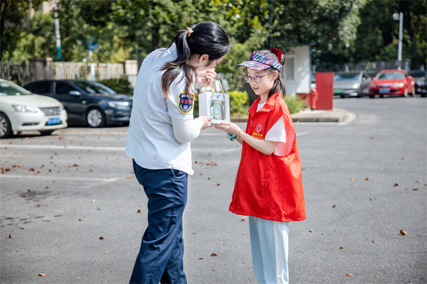 活动伊始,孩子们捧着提前准备好的清凉礼包——绿豆汤、醒神鼻通、清凉油,安静地等候在站点。不一会儿,225路公交车缓缓进站,刚刚结束一趟行程的女司机推门下车,孩子将慰问礼包递到女司机手中,稚嫩纯粹的真诚让汗流浃背的女司机绽开了美丽的笑容。