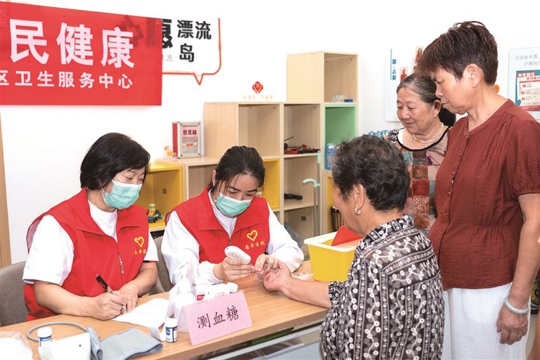 9月15日,在南丰镇和丰塘民生综合服务中心,南丰镇人民医院的中医护理小组通过中医讲座、八段锦教学、血压测量及健康问诊等多种形式,为老年人提供健康服务。邢彬 摄
